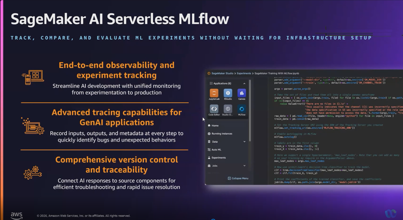 Amazon SageMaker AI with MLflow a serverless capability that dynamically manages infrastructure provisioning, scaling, and operations for artificial intelligence and machine learning (AI/ML) development tasks.